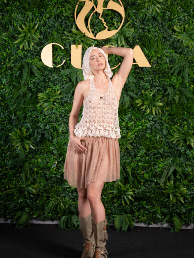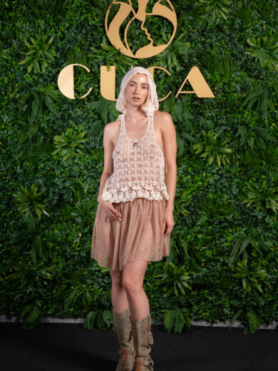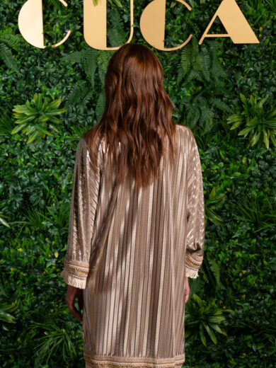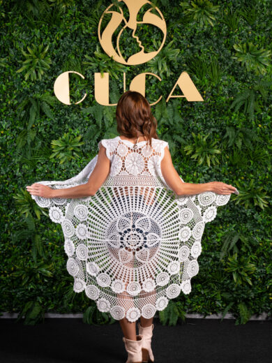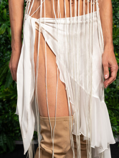 Pareo seda Blanco+Top Tejido con perlas y flecos